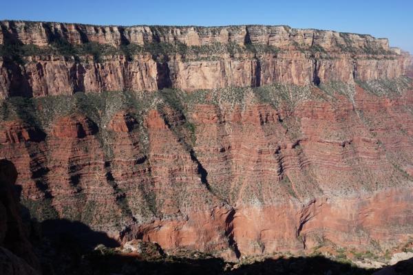 Heute sind wir früh von Flagstaff gestartet, denn auf dem Programm stand eine Wanderung auf dem "South Kaibab Trail" in den Canyon. Glücklicherweise gab es um 8.00 Uhr, zum Start unserer Wanderung strahlend blauen Himmel, sodass das Panorama noch besser war als gestern.