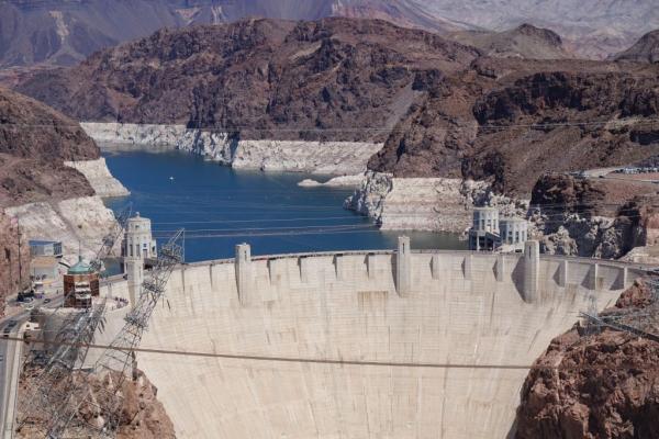 Kurz vor Las Vegas erreichten wir den "Hoover Dam", der den Colorado zum "Lake Mead" aufstaut und die gesamte Region mit Trinkwasser und Strom versorgt.