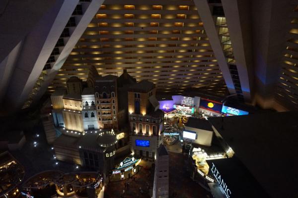 Blick im Hotel Luxor aus dem 23. Stock innen auf die Plaza im Hotel.